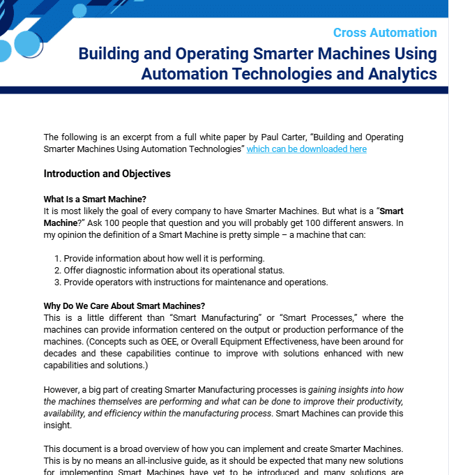 The following is an excerpt from a full white paper by Paul Carter, “Building and Operating Smarter Machines Using Automation Technologies” which can be downloaded here.